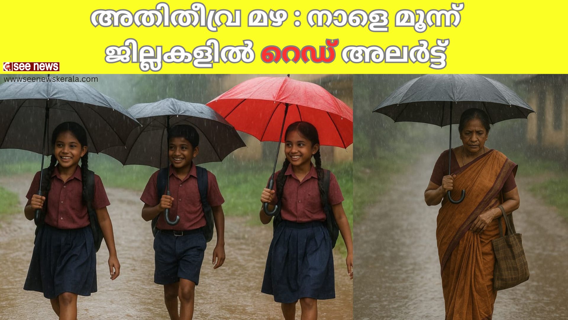 അതിതീവ്ര മഴ: നാളെ മൂന്ന് ജില്ലകളിൽ റെഡ് അലർട്ട്