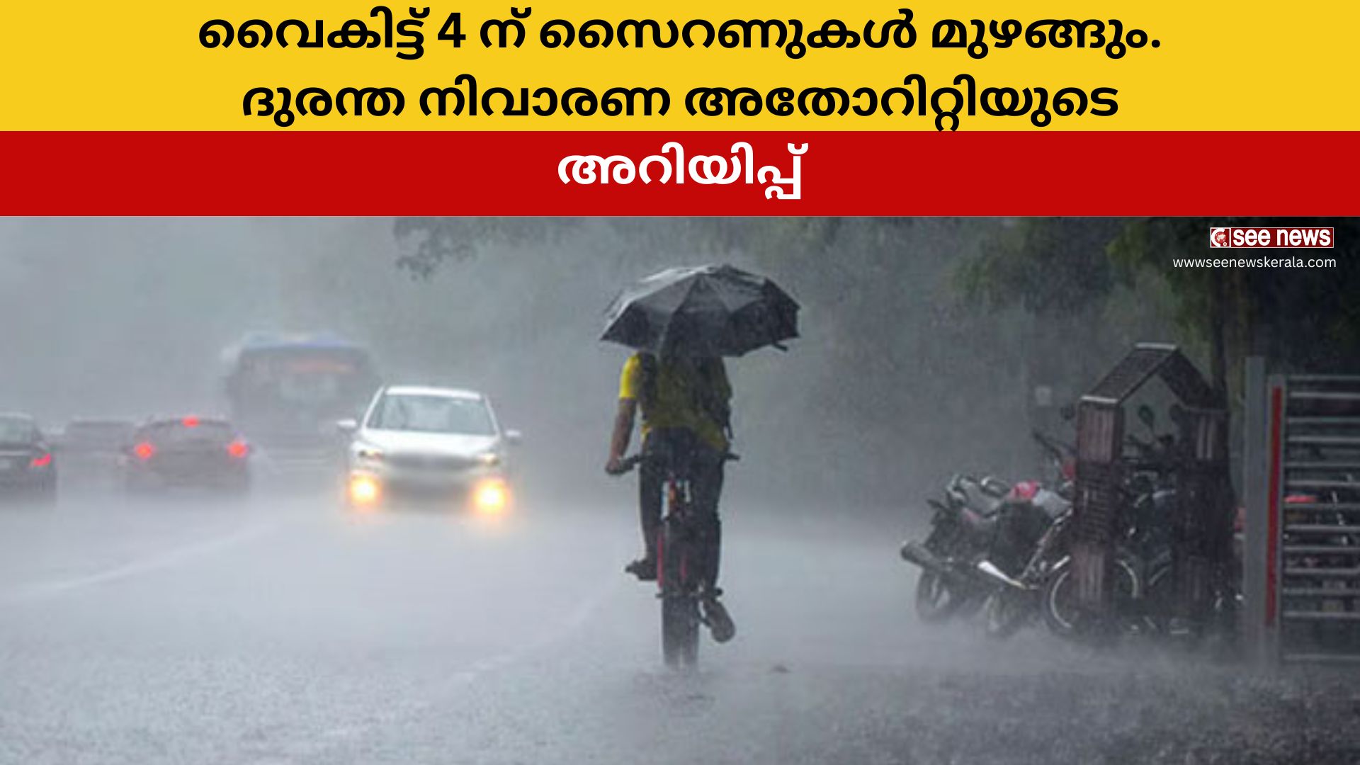 വൈകിട്ട് 4 ന് സൈറണുകൾ മുഴങ്ങും. ദുരന്ത നിവാരണ അതോറിറ്റിയുടെ അറിയിപ്പ്