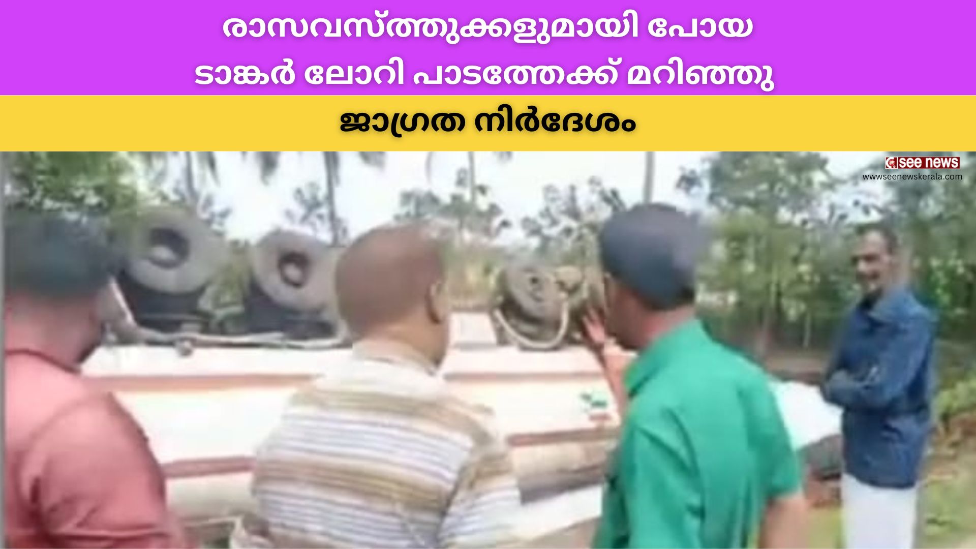 പാലക്കാട് തോലന്നൂരിൽ രാസവസ്ത്തുക്കളും ആയി പോയ ടാങ്കർ ലോറി നിയന്ത്രണം വിട്ട് പാടത്തേക്ക് മറിഞ്ഞു. കൊച്ചിയിൽ നിന്നും തമിഴ് നാട്ടിലേക്ക് പോവുകയായിരുന്ന ലോറിയാണ് മറിഞ്ഞത്. പേയ്ന്റിലും മറ്റും ഉപയോഗിക്കുന്ന രാസ വസ്തുവാണ് ലോറിയിൽ ഉണ്ടായിരുന്നത്.