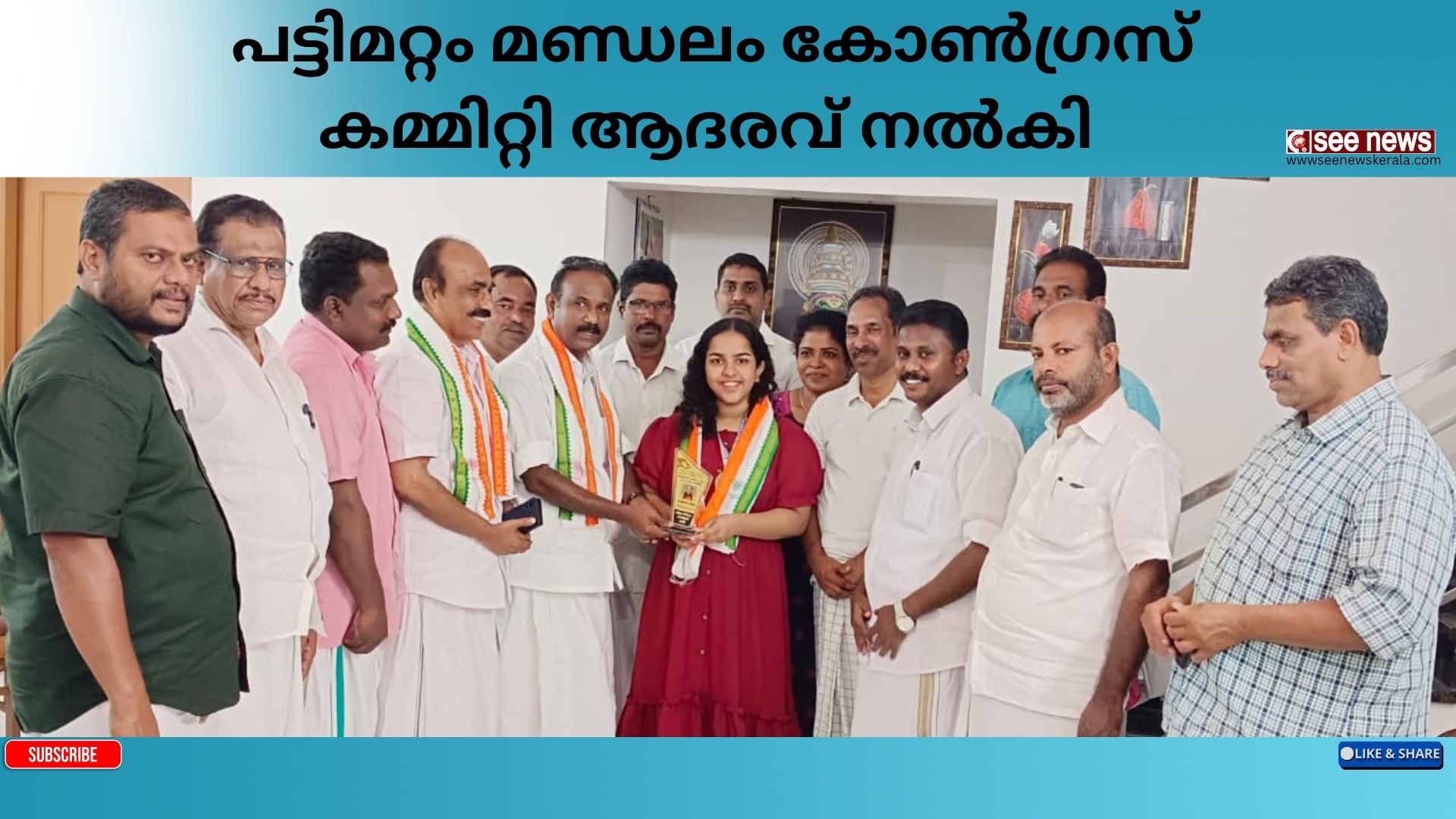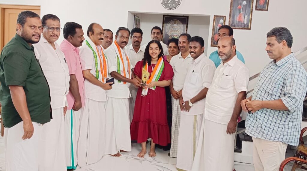 ബാഡ്മിന്റൺ ( സീനിയർ ഗേൾസ് ) വിഭാഗത്തിൽ സ്റ്റേറ്റ് ലെവൽ വിന്നറായ അലീന ബിജുനെ കെപിസിസി വൈസ് പ്രസിഡന്റ് വി പി സജീന്ദ്രൻ മൊമെന്റോയും ഷാളും നൽകി ആദരിച്ചു.