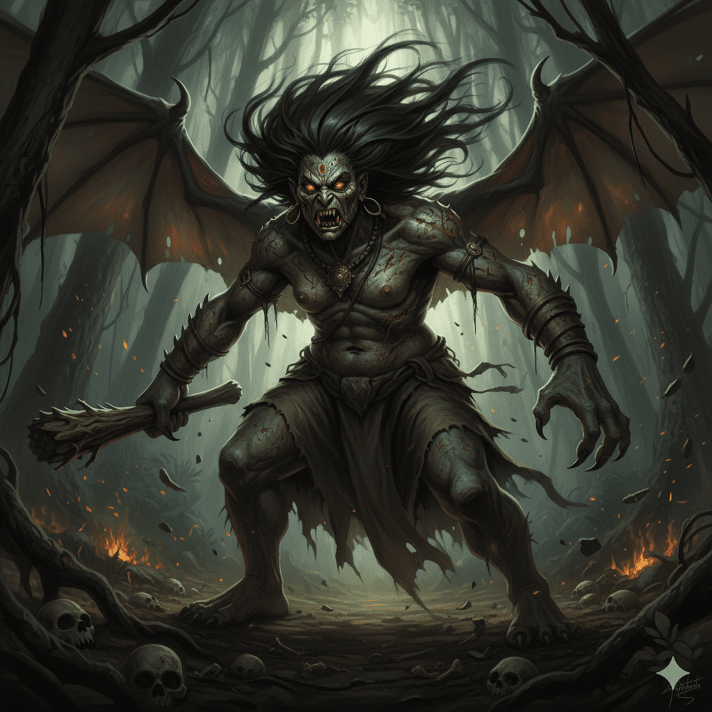 യാത്രയ്ക്കിടയിലെ ആദ്യ പരീക്ഷണം ഭയങ്കര രാക്ഷസിയായ താടക ആയിരുന്നു. അവൾ കാടിന്റെ ശാപം പോലെ മുന്നിൽ വന്നു നിന്നു.