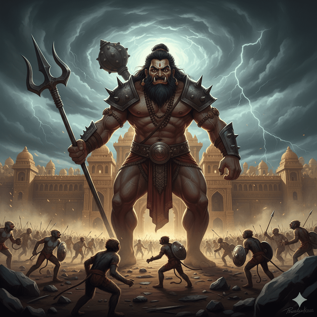 വാനരന്മാരും രാക്ഷസന്മാരും ലങ്ക വളഞ്ഞതോടെ യുദ്ധത്തിൻ്റെ കാഹളം മുഴങ്ങി.