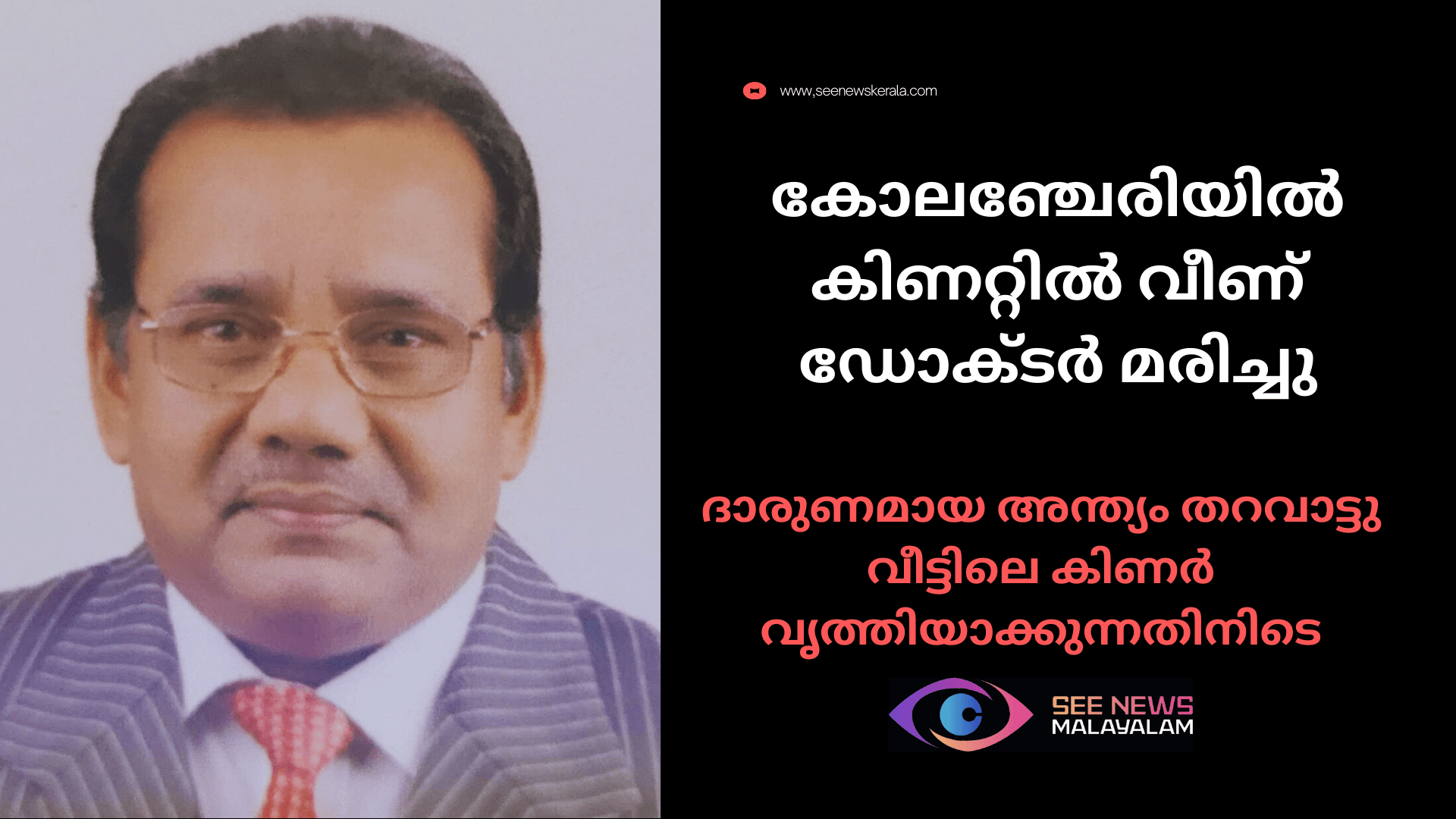 കോലഞ്ചേരിയിൽ കിണറ്റിൽ വീണ് ഡോക്ടർ മരിച്ചു; ദാരുണമായ അന്ത്യം തറവാട്ടു വീട്ടിലെ കിണർ വൃത്തിയാക്കുന്നതിനിടെ
