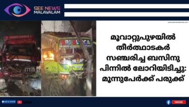 മൂവാറ്റുപുഴയിൽ തീർത്ഥാടകർ സഞ്ചരിച്ച ബസിനു പിന്നിൽ ലോറിയിടിച്ചു: മൂന്നുപേർക്ക് പരുക്ക്