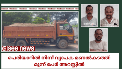 പെരിയാറിൽ നിന്ന് വ്യാപക മണൽകടത്ത്: മൂന്ന് പേർ അറസ്റ്റിൽ