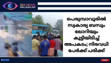 പെരുമ്പാവൂരിൽ സ്വകാര്യ ബസും ലോറിയും കൂട്ടിയിടിച്ച് അപകടം; നിരവധി പേർക്ക് പരിക്ക്