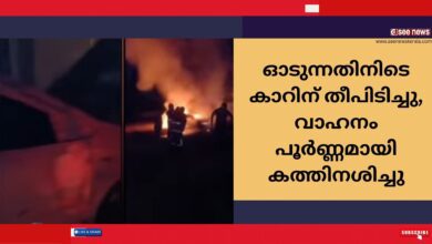 ഓടുന്നതിനിടെ കാറിന് തീപിടിച്ചു, വാഹനം പൂർണ്ണമായി കത്തിനശിച്ചു
