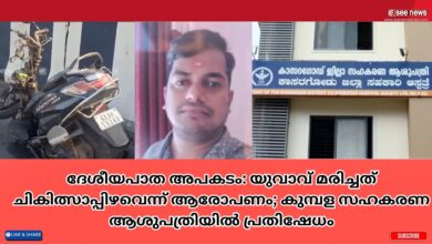 ദേശീയപാത അപകടം: യുവാവ് മരിച്ചത് ചികിത്സാപ്പിഴവെന്ന് ആരോപണം; കുമ്പള സഹകരണ ആശുപത്രിയിൽ പ്രതിഷേധം